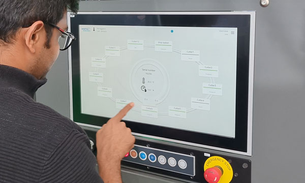 Über eine intuitive Touch-Oberfläche (HMI) nehmen Sie Einstellungen an Ihrer Maschine vor. Der esmo CORE verknüpft die einzelnen Technologien und ermöglicht die Ansteuerung auch von Fremdmaschinen über OPC UA.